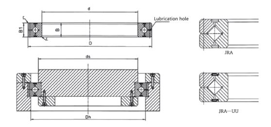 The ultrathin crossed roller bearing includes three product models which have same dimensions while different types of outer rings: JRA series crossed roller bearing is designed with horizontally split outer ring, JRA-C series crossed roller bearing with vertically split outer ring and JRBS series crossed roller bearing with integral outer ring.